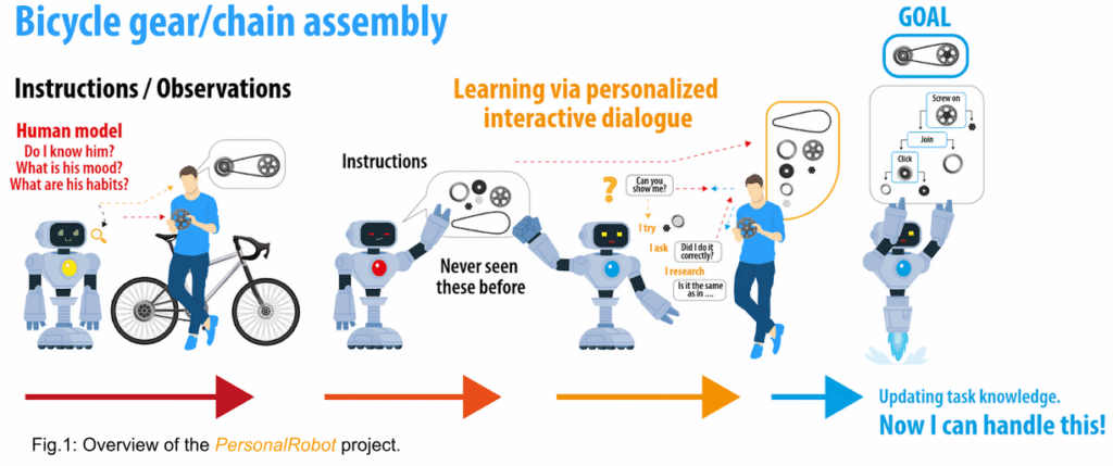 Deploying robots in everyday life, whether in households, healthcare, or small-scale manufacturing, remains a significant challenge. Current robotic systems often struggle in dynamic, unpredictable, and person-specific environments. The PersonalRobot project aims to overcome these limitations by developing robots that can learn like novice human workers through observations, explanations, and interactive dialogue. By enhancing multimodal large language models with flexible memory structures, robots will be able to recall user-, task-, and environment-specific knowledge and continuously refine their understanding, allowing them to adapt dynamically to changing circumstances.